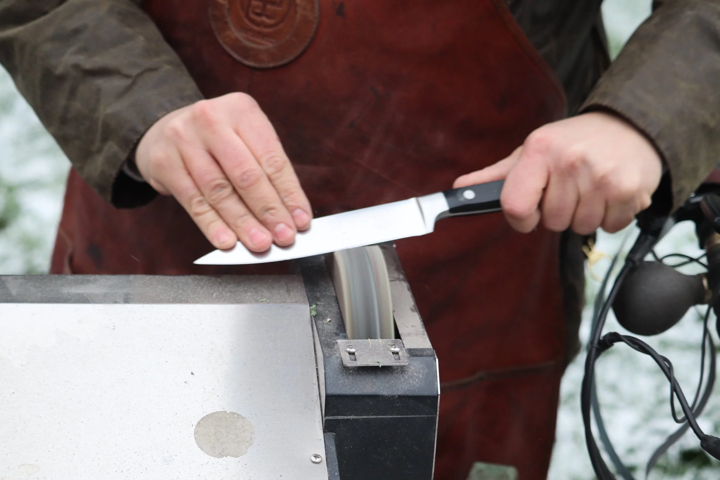 Daarnaast kunt u elke woensdag terecht in ons atelier in Oosterzele. U kunt uw messen daar persoonlijk laten slijpenof achterlaten in de bus, waarna ze professioneel voor u worden geslepen.